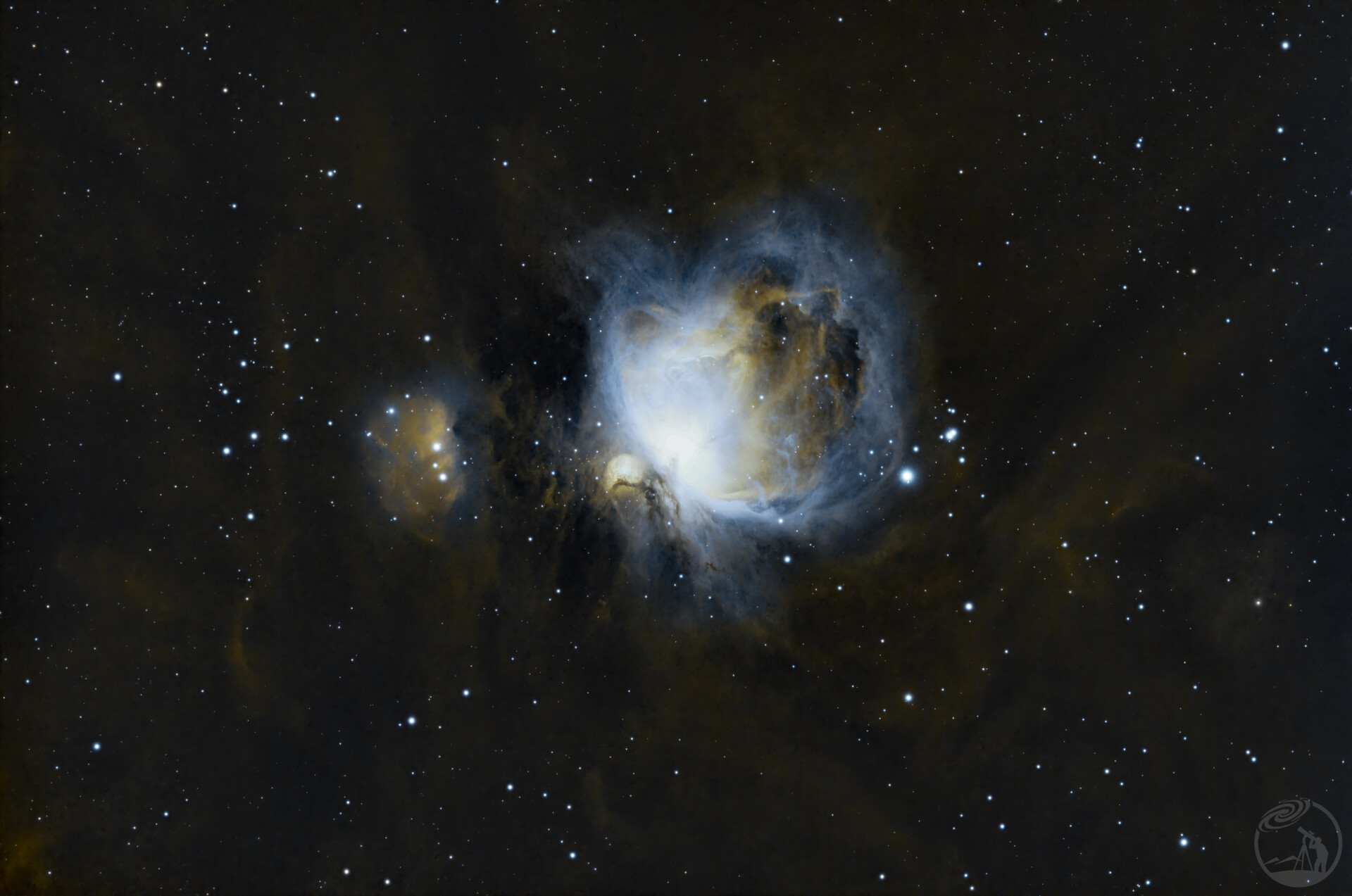 得益于窄带的高对比度和效率,即使8级区两小时的信噪比也说得过去,并且还看到了M42附近的暗淡ha信号。后期过程中尝试了一下用双窄信号合成哈勃色,但是经验不足,提升空间很大。