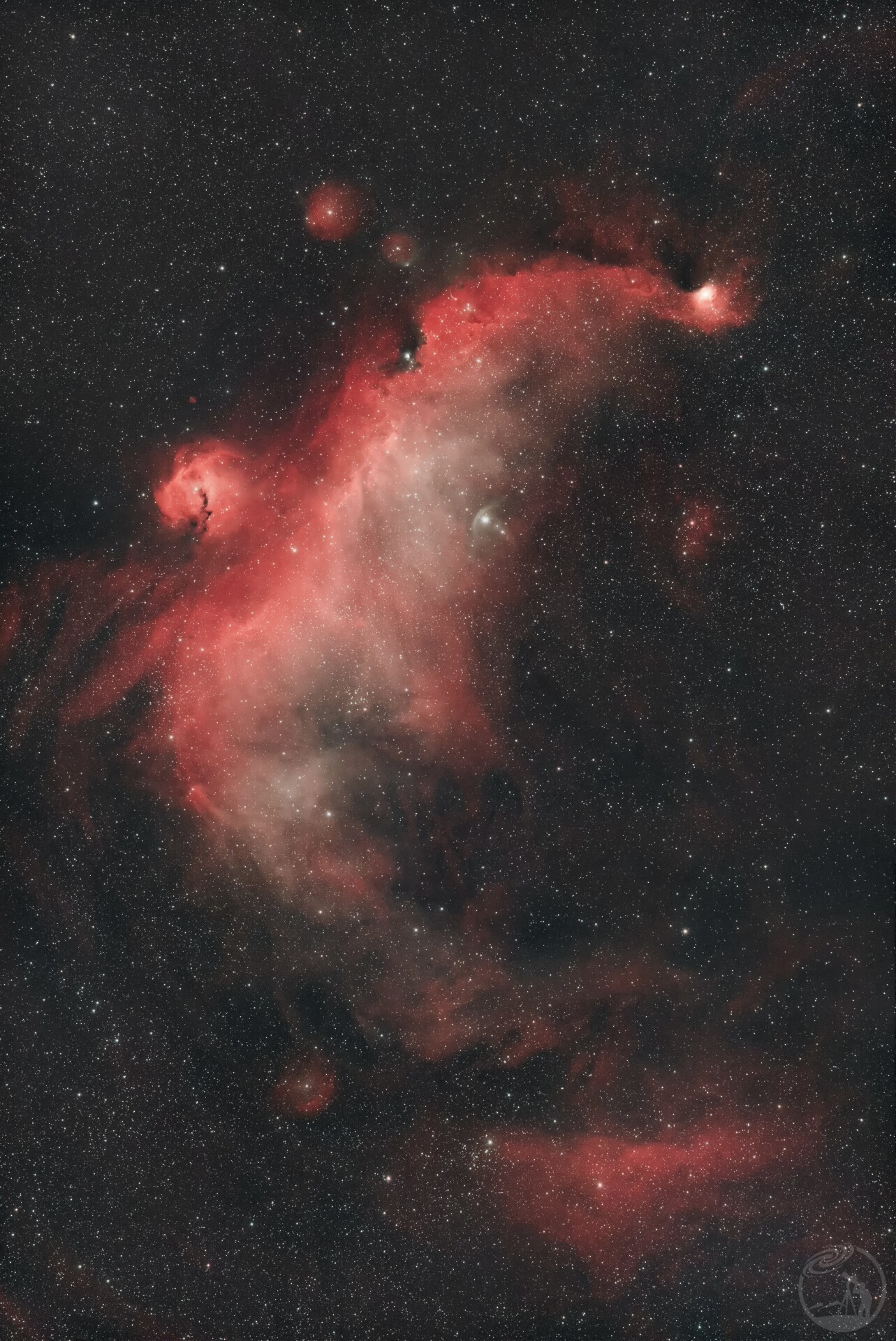 · 类型: 发射星云,主要由被内部年轻恒星高能辐射电离的氢气组成,发出红色的光芒。