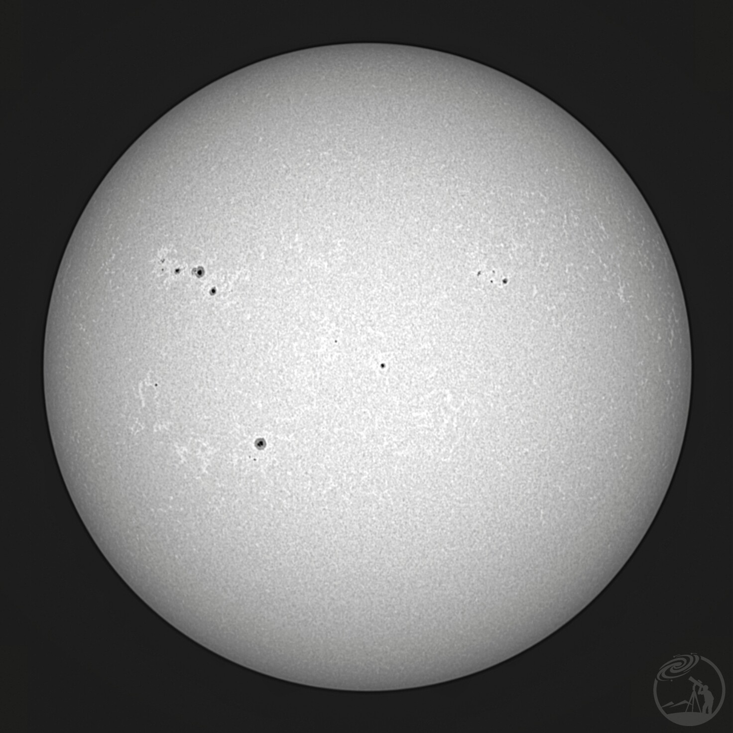 自从迷上太阳日珥镜以来,已经半年多没有拍过光球层了。今天重新搬出沉睡很久的国产85口径折射镜,搭配赫歇尔棱镜,总共拍摄视频21段,其中仅有一幅最满意的图像,非常清晰明亮,极轻微锐化处理一下即出图。而之前的经验也表明,成片满意率差不多5%左右!
