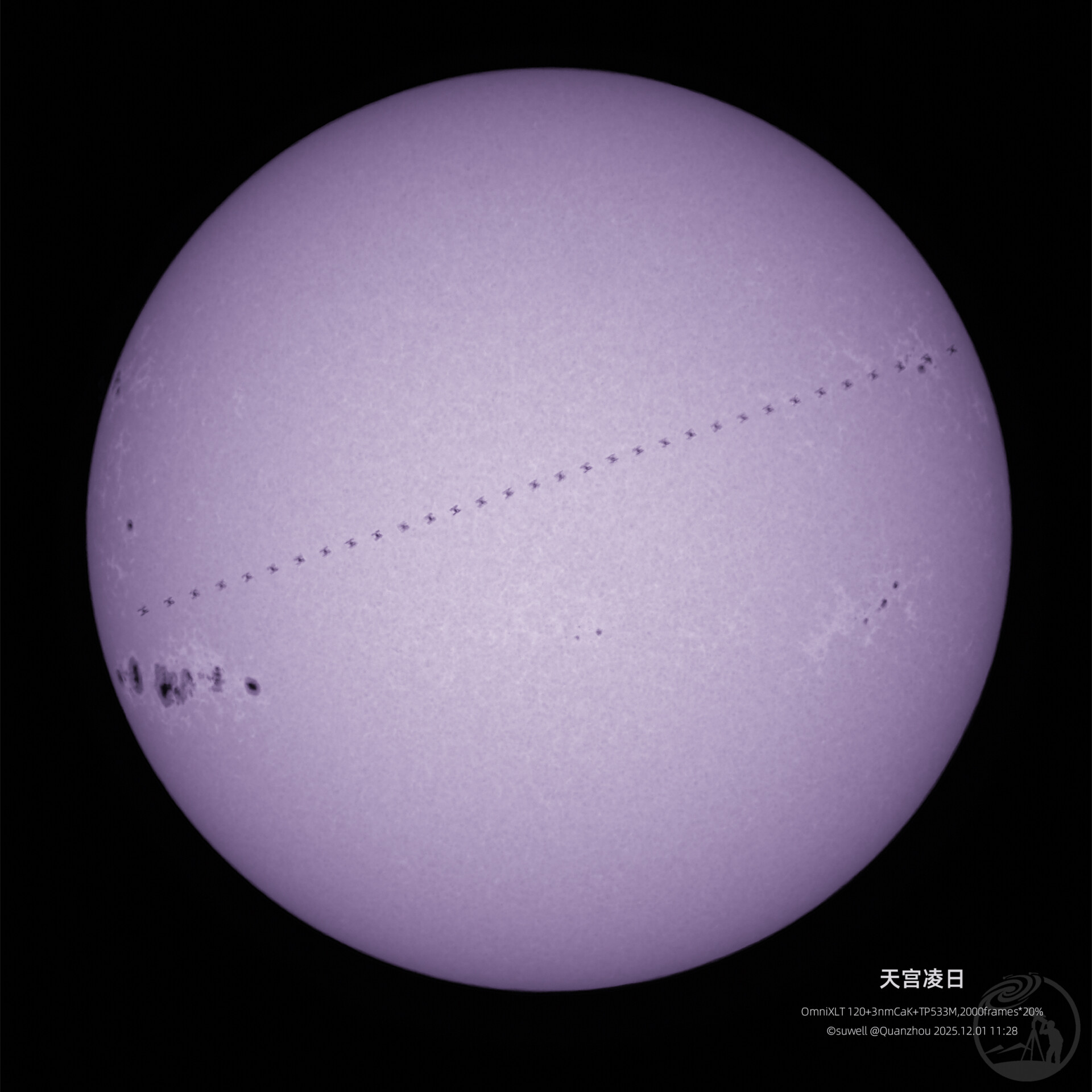 拍天宫凌日,那会太阳东北方向有个正在喷发的大日珥。视宁度不佳空间站拍糊了,不过3nmCaK能拉出日珥也是很开心了。