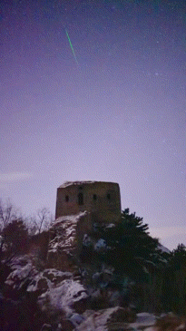 今年的双子座极大值的前一天刚好落雪,于是有了流星垂落古长城,白雪映照流星雨。