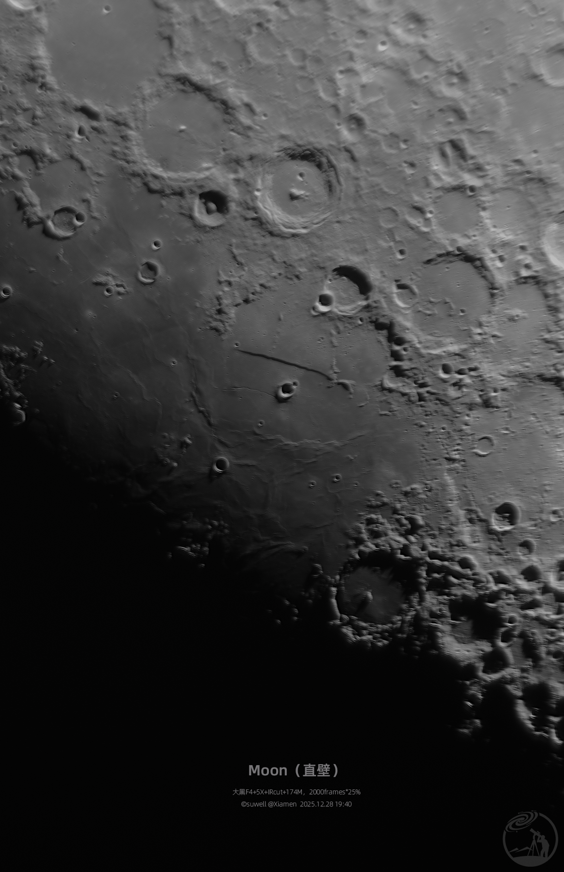 那晚视宁还不错,“登月”看看。 精选 拍摄地点: 福建省厦门市湖里区金鼎巷12号 家楼顶 镜头/望远镜: 大黑F4 相机: QHY174GPS 赤道仪: 晴空ST25PRO 滤镜: IR CUT 评 论 星友评论