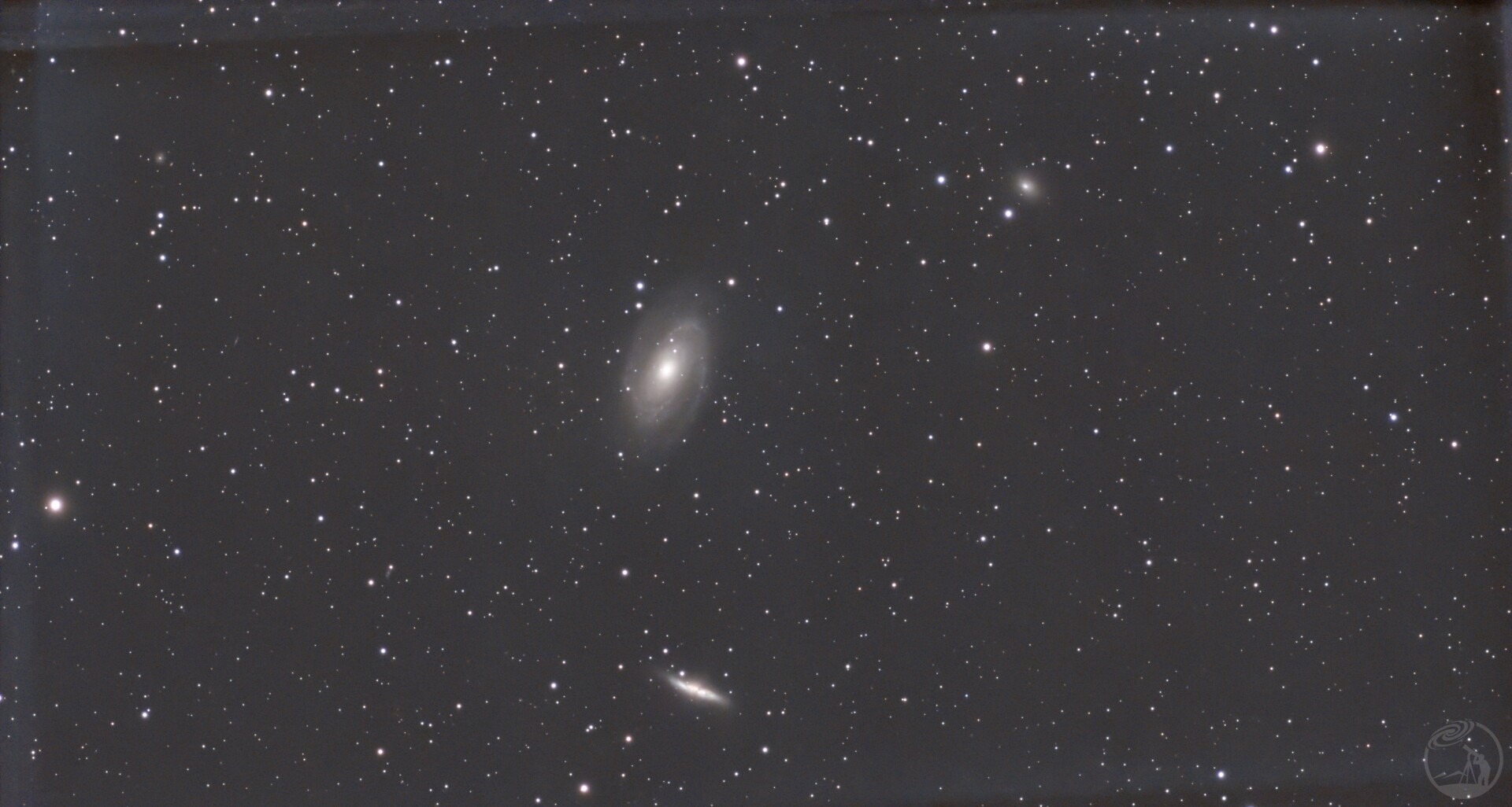 p3是堆栈后未拉伸处理的原图,色彩信息都淹没在背景天光中。经过拉伸处理可以还原部分波德星系悬臂和雪茄星系星爆核心区的Ha的信号。