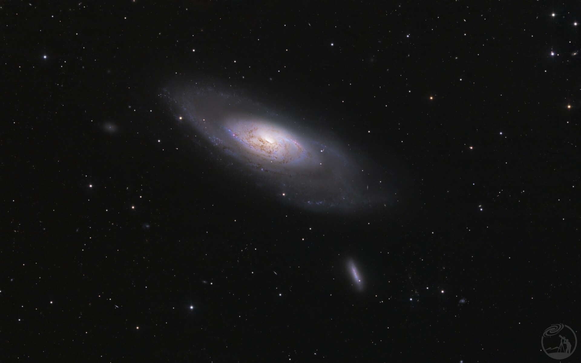 楼顶拍摄的M106,一晚上累计曝光4.5小时。图一和图二为使用dwarf3拍摄的,图3为两年前信达大黑拍摄的。