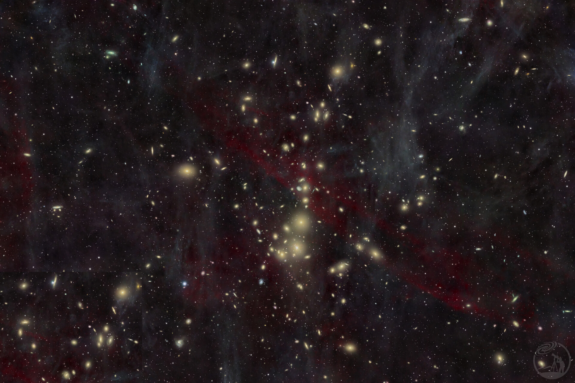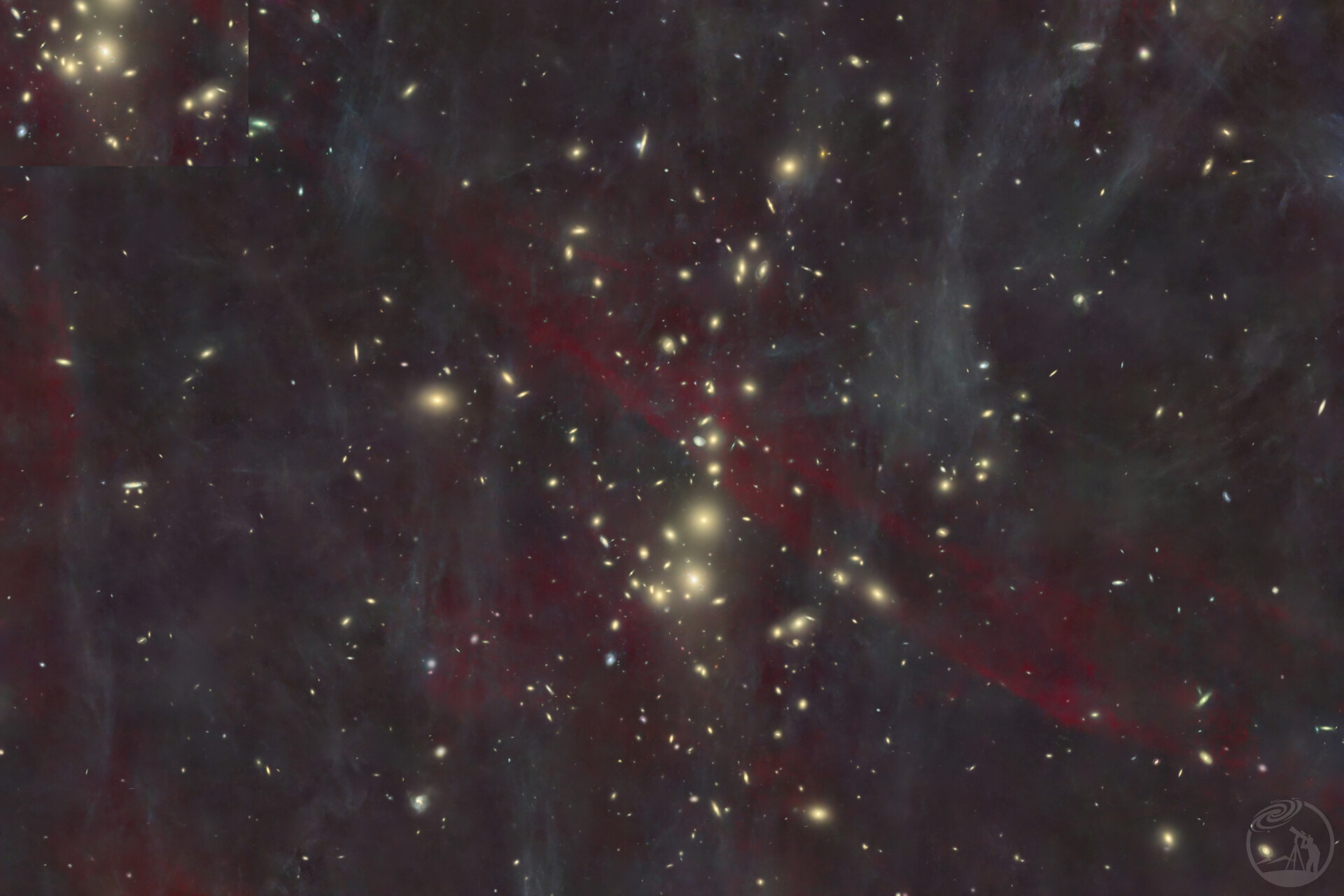 请把手机调到最亮,130apopro的解析力还是可以的,太壮观了,英仙座这片天区虽然相对里面的星系来说这还是广域,但是大致的轮廓都有了,特别是NGC1275的氢氧喷流,是如此的清晰,通透。这是一个非常宏大且充满暴力美学的宇宙结构。简单来说,它不是单个的星系,而是宇宙中已知最大、质量最重的天体系统之一,距离我们大约 2.4亿光年。
