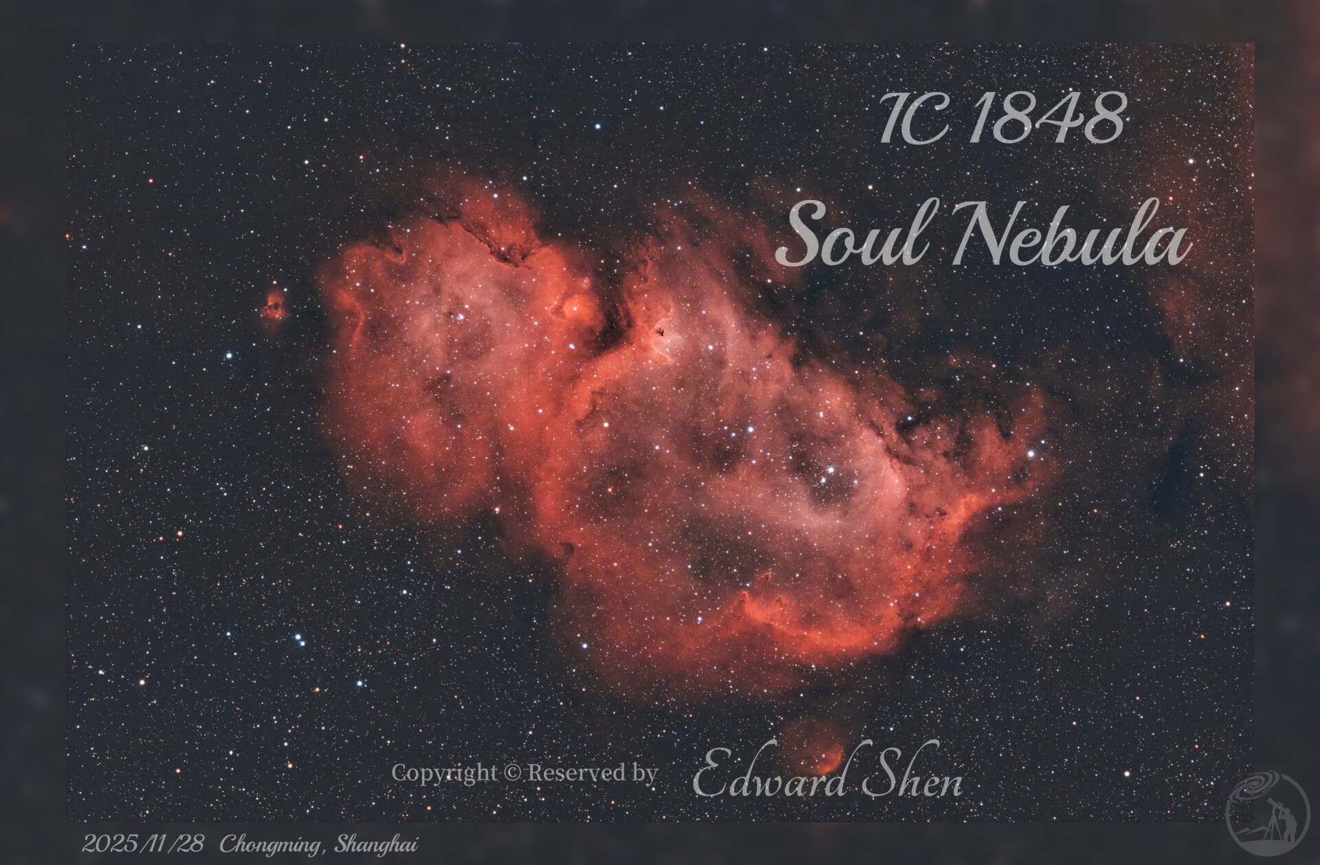IC 1848 灵魂星云 老素材重新做一次后期 精选 拍摄地点: 上海市崇明区东旺路 东滩湿地公园 镜头/望远镜: 天虎 72ED APO 相机: 尼康D5100 冷冻 赤道仪: 小然双17谐波赤道仪 滤镜: Laida 7nm 双窄带 评 论 星友评论
