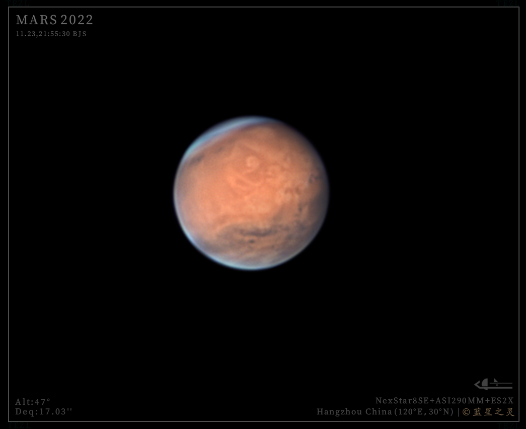 原本打算把握机会多多观测。可惜天公不作美,杭州十月中旬以来一直阴雨绵绵。最终只出摊观测火星了五次,也只有两天的作品比较满意。