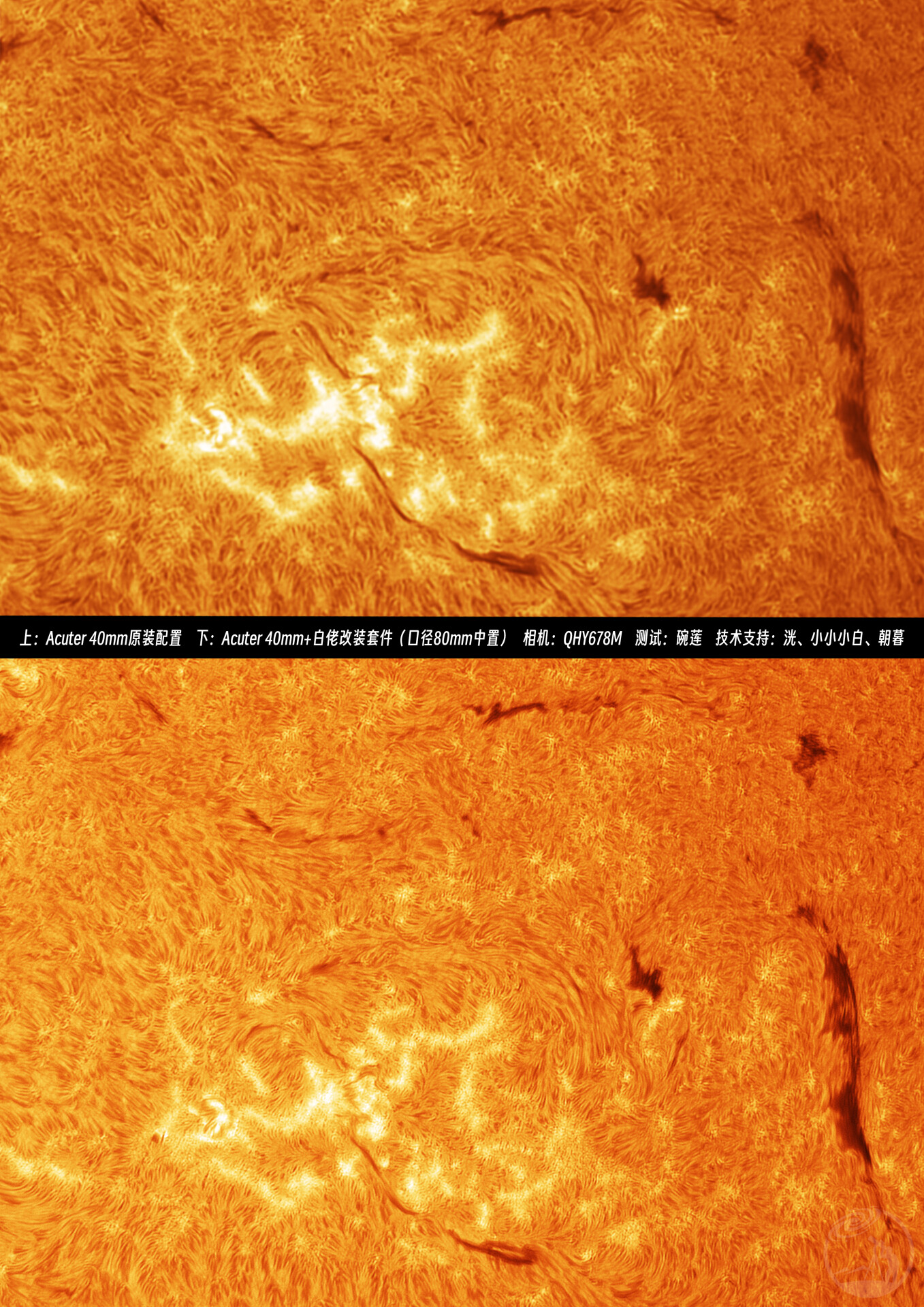 运用光学原理、通过合理的技术手段,我们让有效成像口径只有40mm的太阳望远镜,在原有的基础上进一步改造,达到了极为出色的效果。改造后的它,通光口径来到了80mm,分辨率也大幅增加,可以拍摄到更多更细腻的细节!