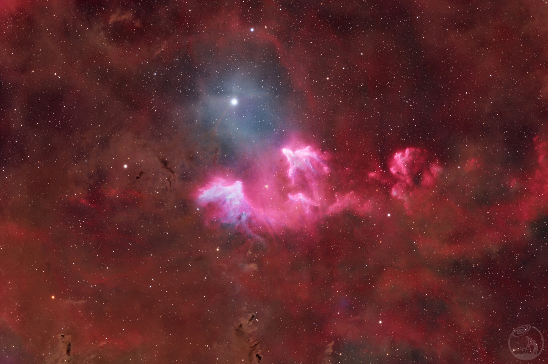 该目标象征着积极向上,每次看都有一种催人奋发的的感觉,星云呈现出独特的彗星状形态,这是由于受到策星强烈辐射压力的影响,星云物质正被逐渐蒸发并吹离恒星所致 。其外观兼具发射星云与反射星云的特征:靠近策星的部分因氢原子受激发产生红色辉光,而较远区域则主要通过尘埃反射星光呈现蓝色晕染 。