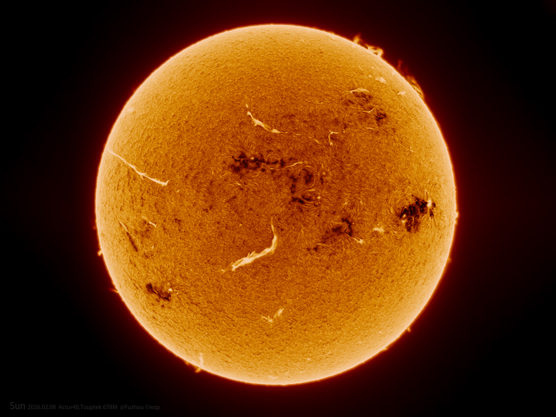 40日珥开光,各位大佬评定带宽有0.3,实数极品。也是运气好了一回,希望未来拍出更多好的太阳作品。 镜头/望远镜: 信达40日珥镜 相机: 图谱678m 赤道仪: 极辰zeestar双17谐波 拍摄张数: 5000帧30% 曝光时长: 10ms 评 论 星友评论