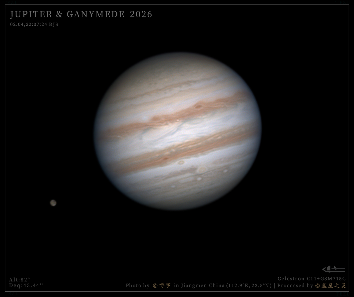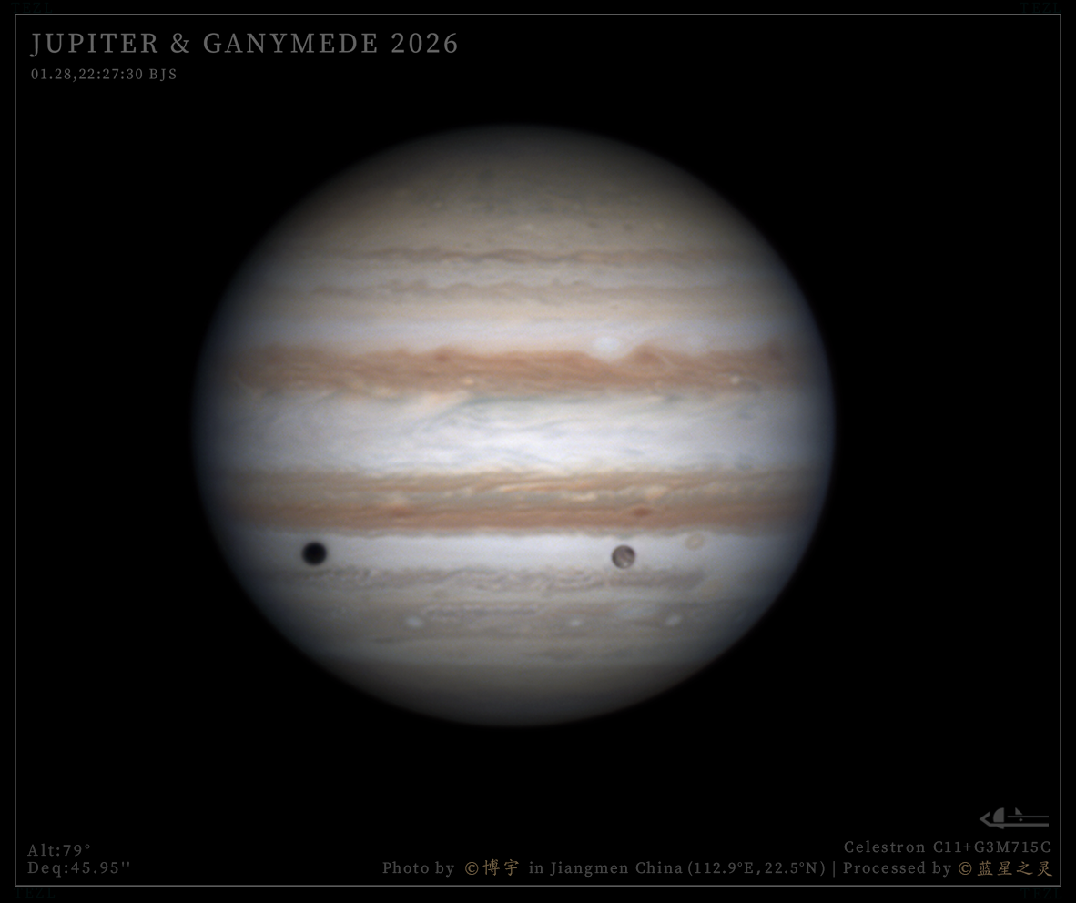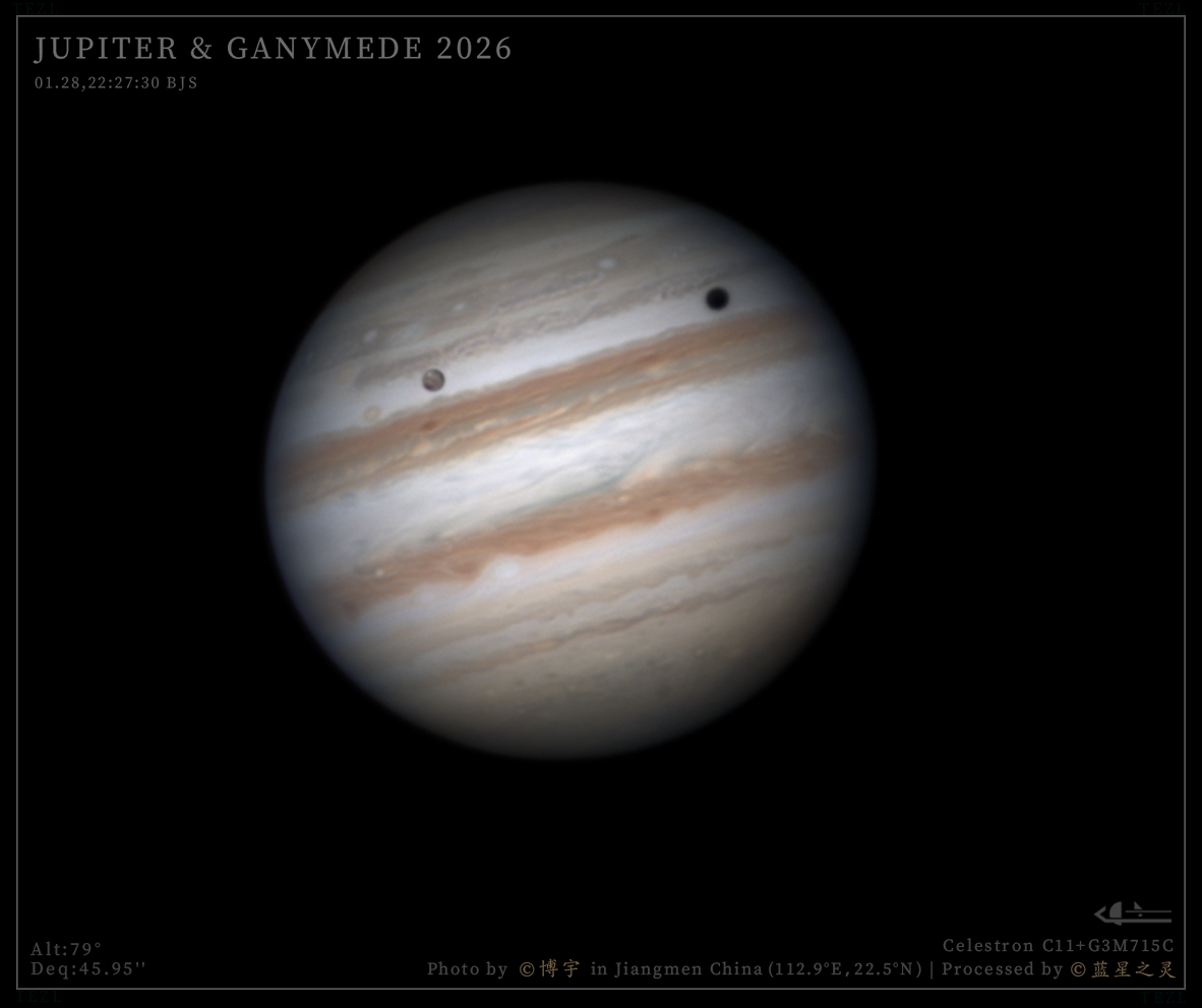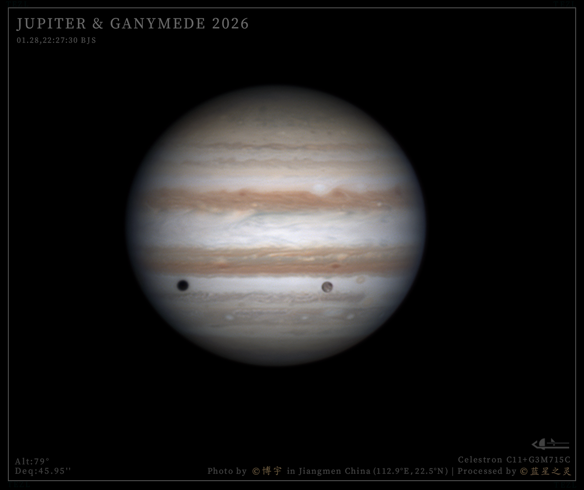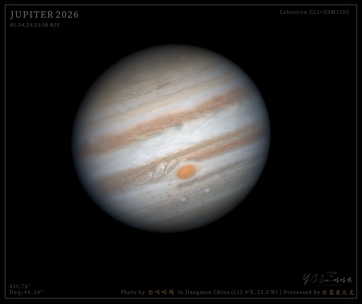 这组素材由江门天文爱好者博宇大佬和咕咕鸡大佬拍摄。设备为C11主镜与715C相机,素材信噪比高,木星和卫星的细节得到清晰展现。 精选 镜头/望远镜: Celestron C11 相机: G3M715C 评 论 星友评论