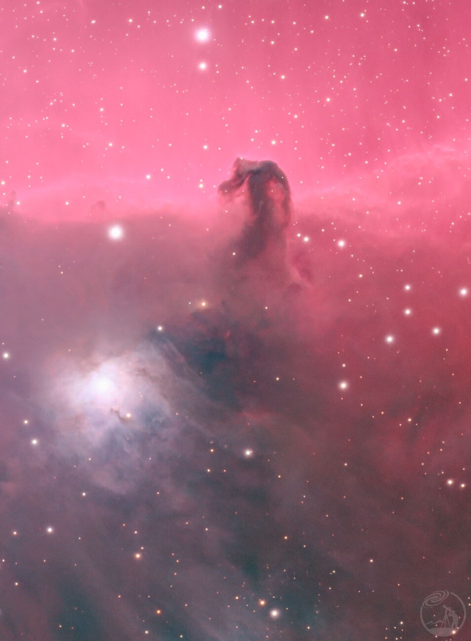 马年发马头星云,黑暗的尘埃造成在红色发射星云背景映照下产生的独特造型